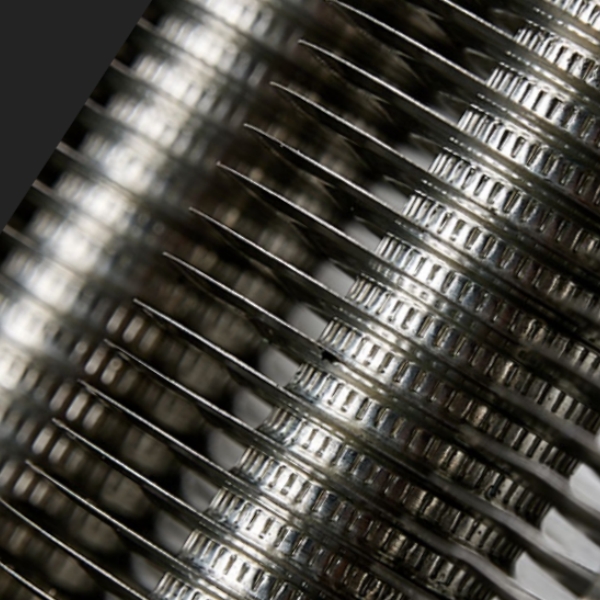 - Fin Strip Insertion – A metal fin strip (usually aluminum or copper) is wound under tension into the knurled groove.